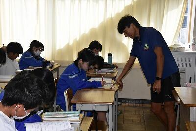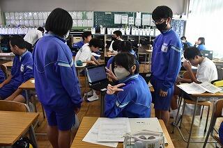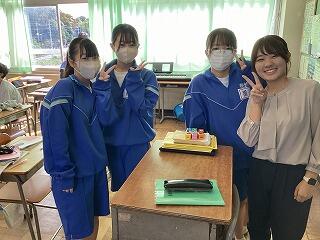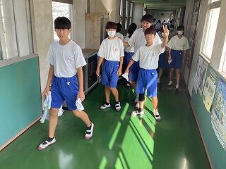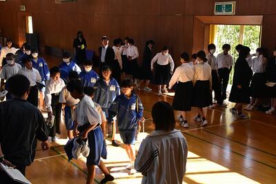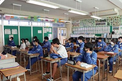 今日から11月。日中は11月とは思えない陽気ですが、朝夕はしっかりと冷え込みます。寒暖差に気を付け今月も頑張りましょう。午後から、校区内の小学校・高校の先生が来校され、授業見学と学校・生徒たちの様子などについての話し合いが行われました。久しぶりにお会いする小学校の先生たちとの再会に大興奮の葛中生たちの姿がたくさん見られました。
