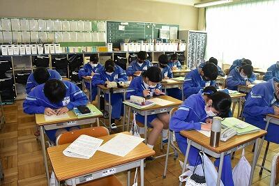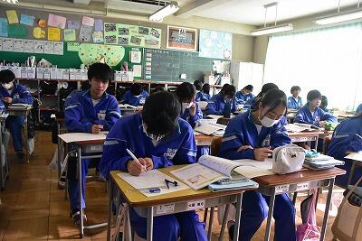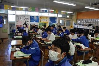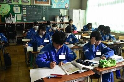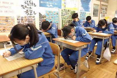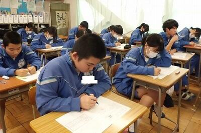 今日は春日部市教育委員会から指導者の先生にお越しいただき授業研究会が行われました。3年生は一日東部地区学力検査でした。