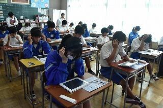朝夕は涼しく、すっかり過ごしやすくなりました。体育館では3年生が、実際の隊形に並んで、学年合唱の練習を行っていました。2年生は、スコア型4技能検定GTECを受検しました。GTECは、使える英語力を合否ではなく絶対評価で測定する、スコア型の検定です。検定では、「聞く」「話す」「読む」「書く」の4技能の英語力を測定します。今年度より春日部市内全校で実施することになりました。通常の「聞く」「読む」「書く」テストに加え、タブレットを用いて音声を録音することで「話す」技能も測定します。結果はスコアだけでなく今後の学習へのアドバイスもあります。結果を基に更なる英語力アップを図りましょう!