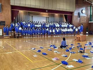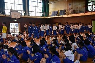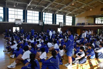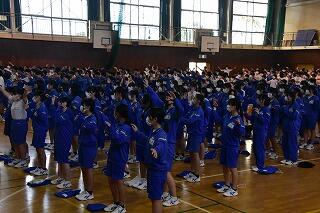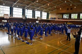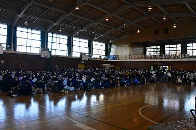 体育館に全校生徒が集合した様子です。 久しぶりです。 |