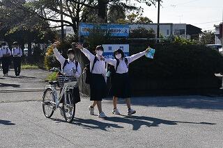 ひんやりとした空気と透き通った青空の下、今日も地域の方々があいさつ運動に来てくださいました。また、生徒会のみなさんも一緒に校門に立って声を掛けてくれました。明後日の合唱祭を前に、校内のあちこちから歌声が聴こえてきます。