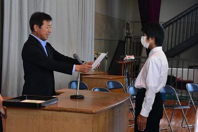 先日行われた生徒会役員選挙で新しく発足した新生徒会役員に対する認証式と、新旧生徒会役員の引継ぎ式と表彰集会が行われました。引継ぎ式では、前生徒会長にから、すべての葛飾中生、新生徒会役員、そして葛飾中学校に対して、大変素晴らしい感動的なメッセージが発せられました。このあと、各種作文や展覧会、部活動で輝かしい活躍をした生徒に対し表彰が行われました。体育館は称賛のあたたかい拍手に包まれました。「葛中魂」の葛飾中学校!