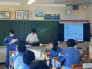 今日は保健委員のみなさんが、各クラスの朝の会で、虫歯予防など、歯の健康についてクイズ形式でクラスの生徒に呼び掛ける活動を行ってくれました。