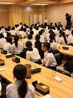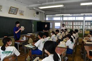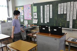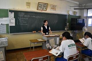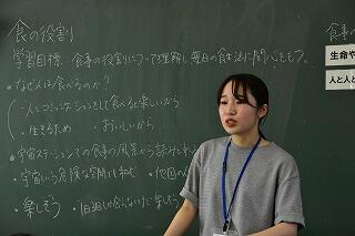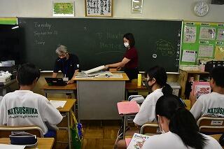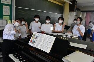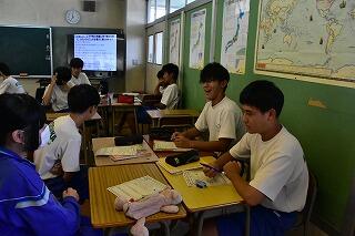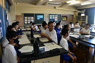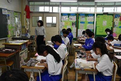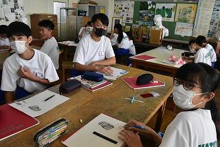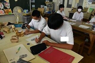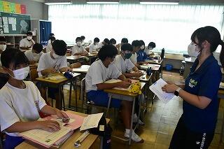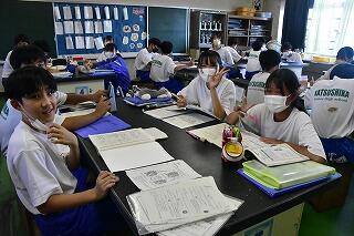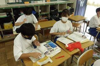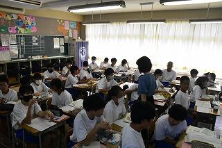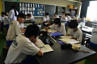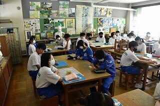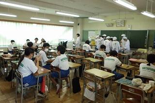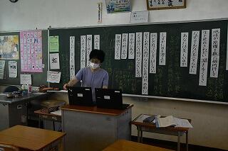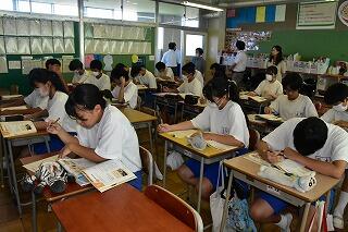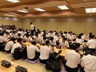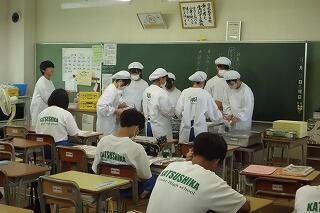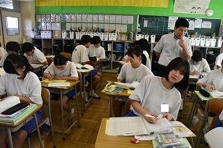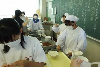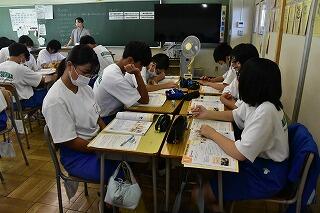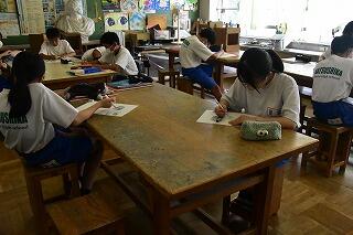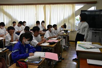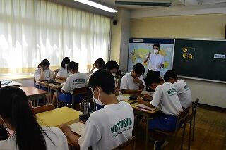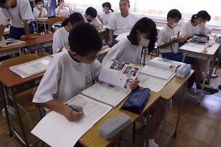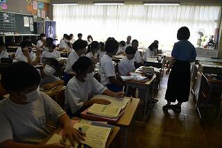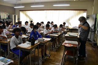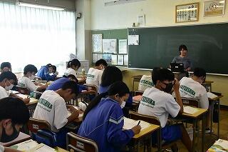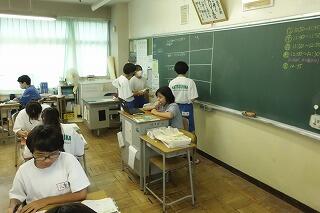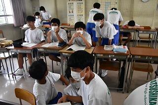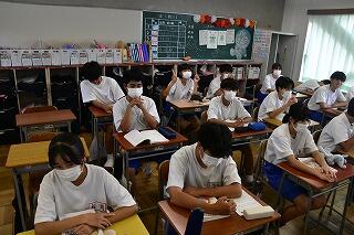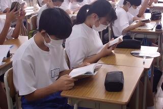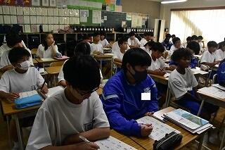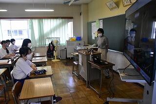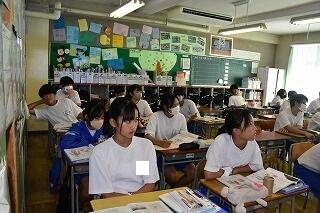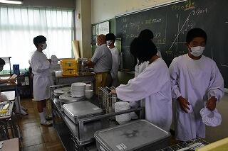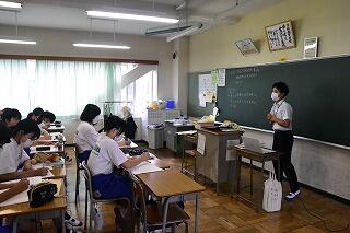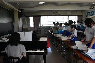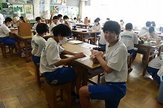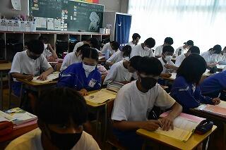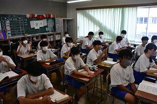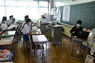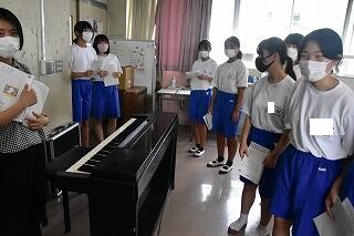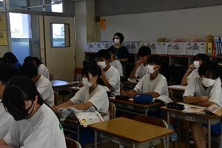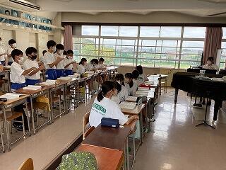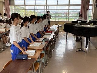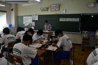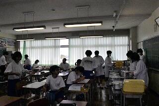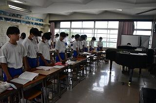 今日から早速授業が始まりました。音楽室では3年生が合唱祭に向けて、クラス曲の音取りの第1回目を、2年生の家庭科の授業では、「食育」の普段は給食に関わる仕事を主にされている栄養教諭の先生が、家庭科の先生と一緒に授業をしてくださいました。生徒たち学校が始まったばかりではありますが、真剣に授業に臨んでいました。