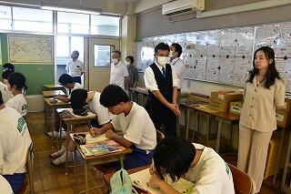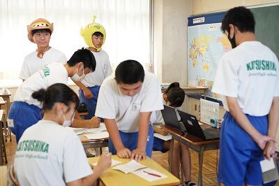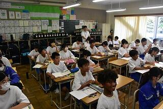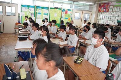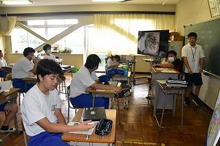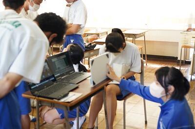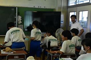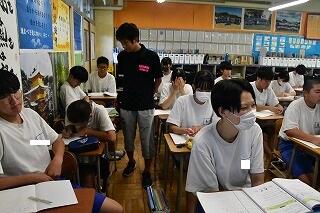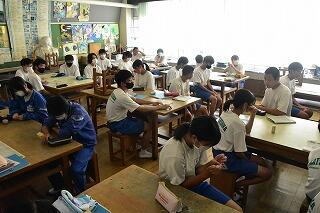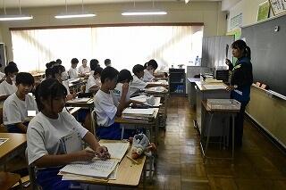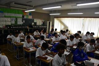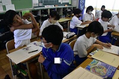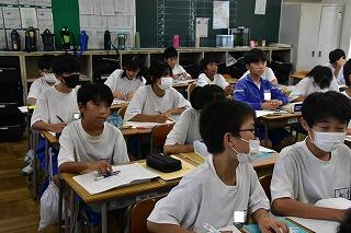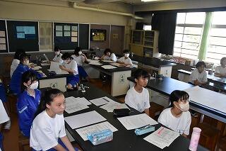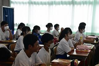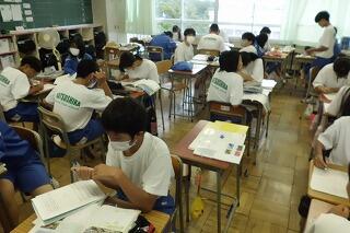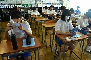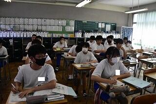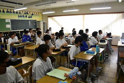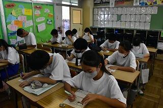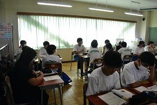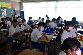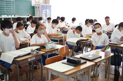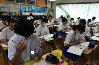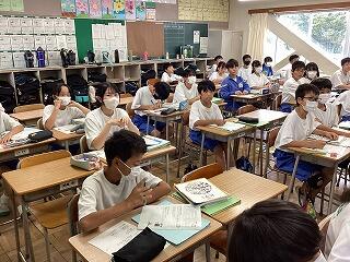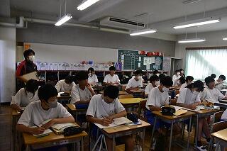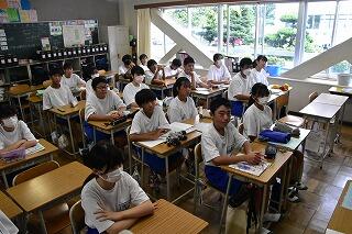 今日もまた厳しい暑さの一日となりました。生徒たちは、エアコンの効いた環境の中、学習に励んでいました。午後からは、講師の先生をお招きし、「ネットモラル講演会」が開催されました。まもなく夏休みです。今日学んだことをしっかり頭に入れ、便利であり、大変危険な面も持つ、SNSやインターネットを上手に使いこなしてください。生徒のみなさん、保護者の皆様には、引き続き十分な量の水分の用意をお願いいたします。