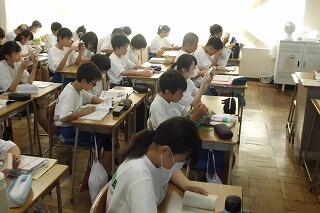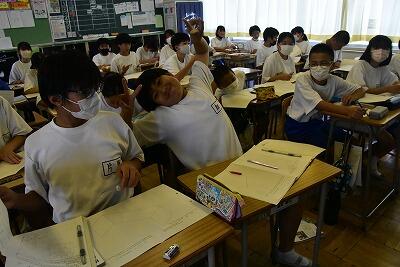 3年生は明日から修学旅行です。準備は万端です。気を付けて行ってきてください。相変わらず酷暑が続いています。早寝・早起き・朝ごはんと、十分な量の水分の用意をお願いします。