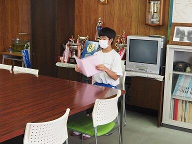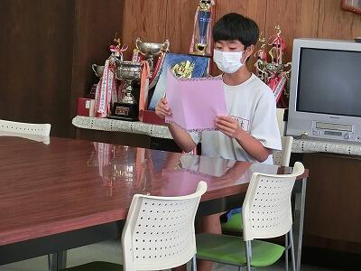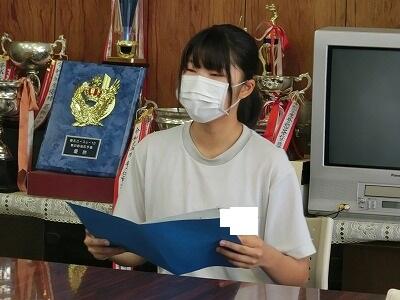 部活動では、進んで準備や片付けなどをし、挨拶やかけ声は大きな声で気持ちよく活動できるようにしたいです。1学期に大会で活躍する同級生を見て、すごいなと思いました。私も自分のベストを尽くせるように練習に取り組みたいです。そのためには、ただ距離を走るのではなく、スピードや走るときの姿勢を意識して練習をしたいと思います。