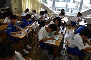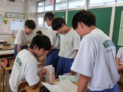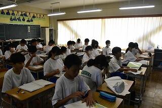 体育祭が終わり、その後には期末テストがありました。テスト前では、提出物を期限内に終わらせられるように、みんなが必死に課題に取り組んでいました。その中でもワーク以外の勉強に取り組んでいる人もいれば、ワークをテストの日ギリギリまで進めずにいる人もいて、勉強の取り組み方に違いが見られました。2学期の中間テストでは、みんなが進んで学習に取り組めるような雰囲気作りをしていきたいです。