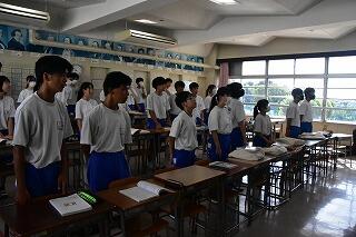 今日で1学期が終了し、すでに受験生としての半分の時間が過ぎたことになります。3年生の皆さんは受験生という意識はありますか。いろいろなものが終わり、少しずつ受験、そして、卒業に近づいていきます。最後の中学校生活を仲間と共に充実させていけるように、残された時間を悔いなく過ごせるように、一人一人が最高学年であり、受験生であるという意識を持って、明日からの夏休みを有意義に過ごしていきましょう。