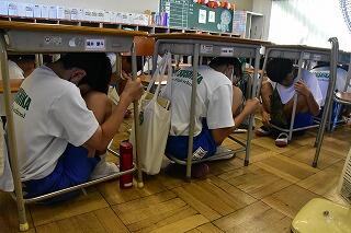 9月1日は防災の日です。今年は関東大震災が発生してから100年となります。葛飾中学校では、発生時刻の11時58分に合わせて行われた「シェイクアウト埼玉~県内一斉防災訓練~」に参加しました。同時刻には、第2回学校運営協議会も行わわれていましたが、事前に告知を行わない中で、整然と訓練を行った生徒たちの様子をご覧になられた委員の方々からは、お褒めの言葉をいただきました。