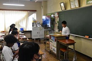 三つ目は、あいさつです。学年全体を見ると、止まって相手の目を見てあいさつができていない場面があります。僕はこの一学期で動きを止めて、相手の目を見てあいさつを意識して生活してきました。急いでいる時、少しあいさつがおろそかになっていることがあるので、その点を学年全体でも気をつけていきたいです。