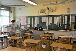 ①教室の空気を入れ替える。②机やいすを整える。③黒板にメッセージを書く。
