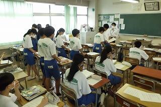 たった3ヶ月の1学期でしたが、学校生活に慣れ、さまざまな行事をとおして中学生としての自覚やクラスの団結力も高まりました。2学期も、個人やクラスの良いところは継続し、悪いところは見直し・改善をしてさらに充実した学校生活にしていきたいです。
