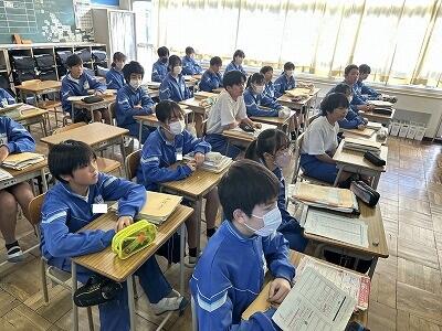 PTA給食試食会が開催されました。春日部市学校給食センターとしては、実に5年ぶりに実施する給食試食会とのことでしたが、たくさんのご来校ありがとうございました。春日部市学校給食センターの所長様、本校栄養教諭から、学校給食についての講義を受けたのち、生徒たちが毎日行っているように配膳作業を体験し、給食の試食となりました。3学期給食初日のメニューは【お正月にちなんだ献立】ということで、菜めし、あかうおの甘酒焼き、紅白なます、白玉雑煮、牛乳でした。みなさんでおいしくいただくとともに、日頃から生徒たちが毎日お世話になっている給食について知っていただく大変良い機会となりました。