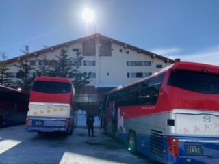昼食をとり、これから帰路に着きます。メールにてお伝えしましたが、帰着については5時30分頃(道路状況で前後することがあります)の予定です。バスの運行優先にご協力願います。