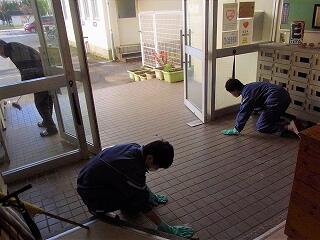 毎朝、玄関を掃除してくれる生徒もいます。