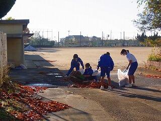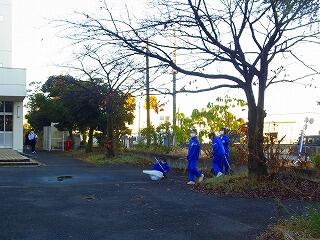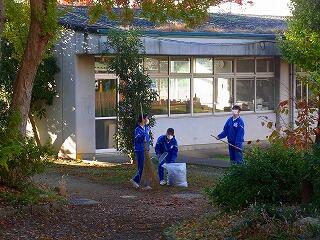 霧が晴れて、木々の色づきと青空が爽やかな朝を迎えました。そして、学校に着くと朝練習で登校していた女子ソフトテニス部と先生方が、校舎周りの落ち葉掃きをしてくれていました。一層爽やかな気分になり、今日も素敵な葛飾中学校の一日が始まります。