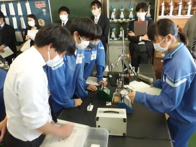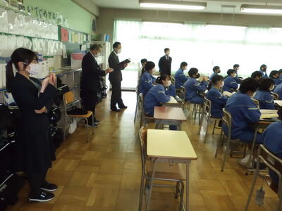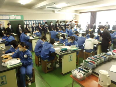 2年理科担当の出井先生の授業を参観するために、市内・市外より計45名もの来校者があり、2年1組の授業を見学されていきました。普段とあまりに違う雰囲気に戸惑いつつも、日々のよい授業の様子が発表できました。2-1のみなさん、お疲れ様!