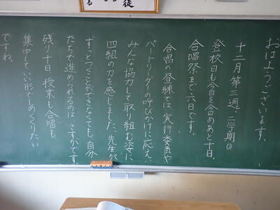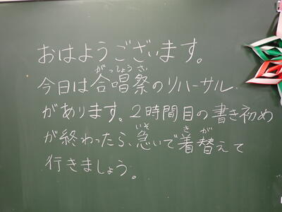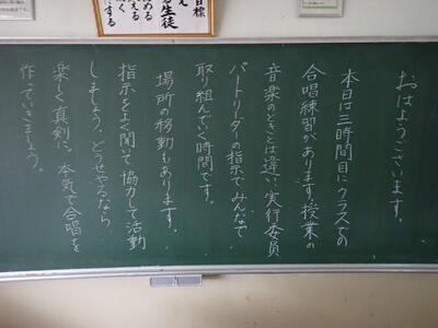 昼休みは、合唱練習での歌声が学校中飛び交いました。