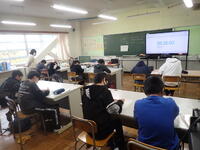 3学年のある教科で、生徒一人一人がタブレット端末で期末テストを受けていました。