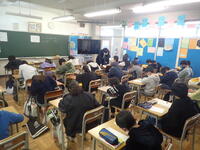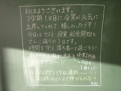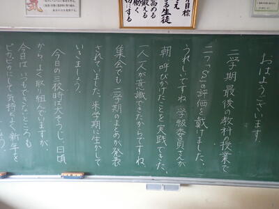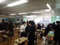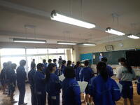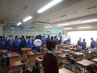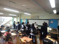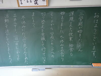 葛飾中生は、3学期初日から元気いっぱいです。久々に会った友達と楽しそうに会話している生徒が多くいました。また、先生の話はしっかり聴く、というけじめをしっかりつけています。3学期の更なる成長が楽しみです。
