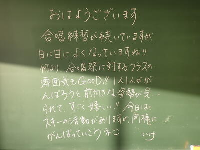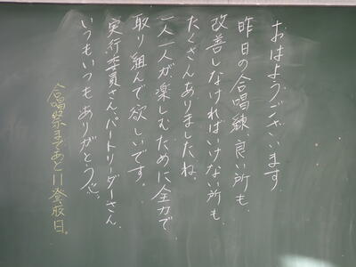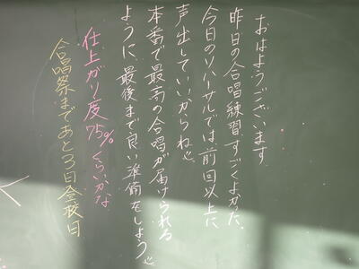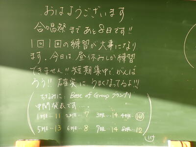 合唱祭まで10日を切りました。どの学年、どのクラスも練習に一層熱が入ってきました。