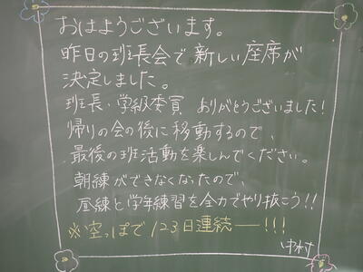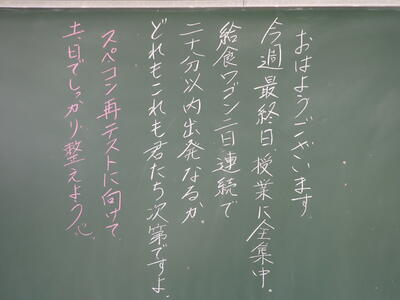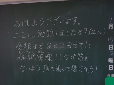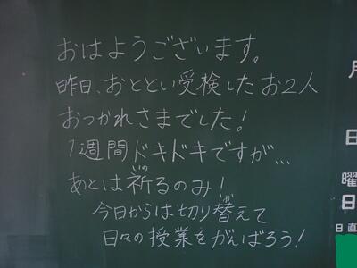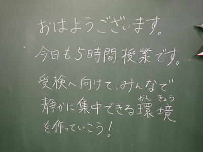 県公立高校入試まで2週間あまり、もう少しです。体調に気をつけて頑張ってください。