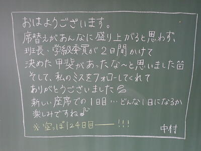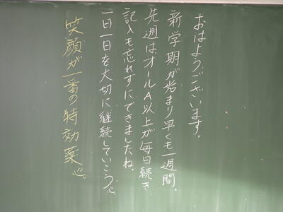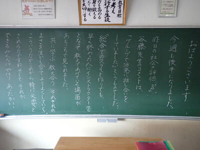式辞の中で、「今学期の君たちは確実に『一歩前進』しました。来学期は毎朝のあいさつから始め、いつでも『新鮮な気持ち』を持って生活して欲しい」と訴えました。