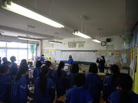 早朝まで風が強く大雨が降り、まるで台風のような荒れた天気でしたが、朝の会頃には穏やかになりました。そして気温も高くなり、入学説明会もスムーズに進行できました。