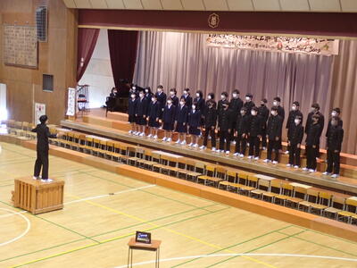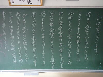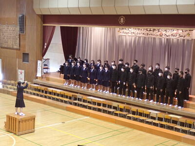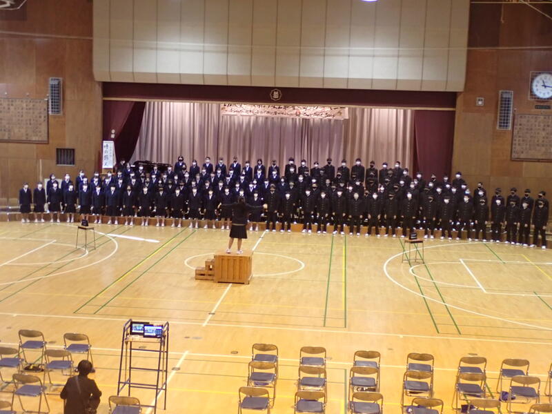 朝、校内を回っていたら素敵な歌声が聞こえました。さすが3年生。気合い入っています。
