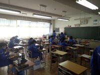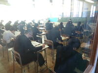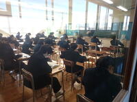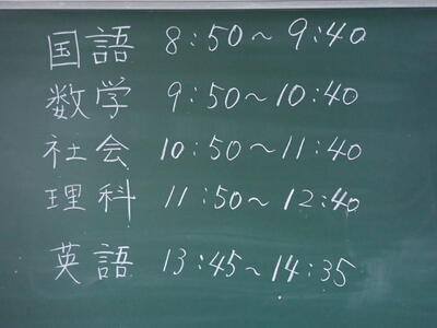 今日は、3年生が学力テスト(1~5校時)、1,2年生が課題テスト(1~3校時)でした。みんな必死に取り組んでいました。実力出し切れましたか?