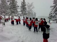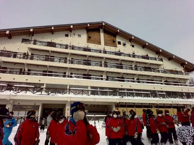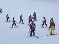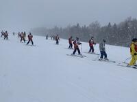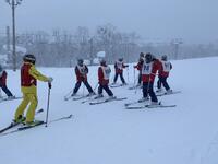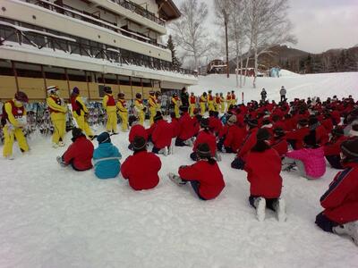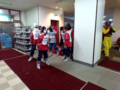 スキー教室2日目の朝の様子です。朝食を食べ終え、全員揃って、2日目午前中のレッスンに出発できました。