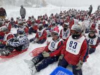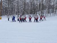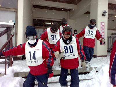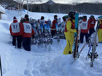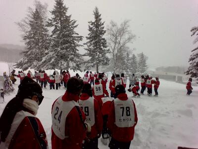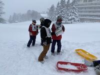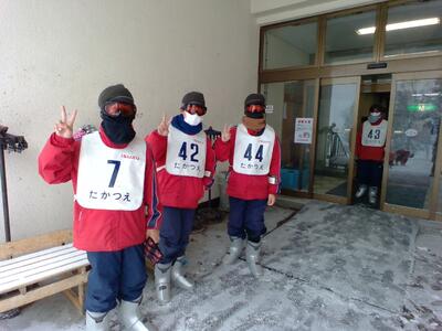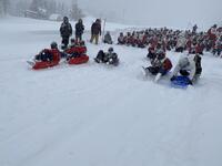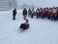 午後のレッスンの後に雪上レクで「チキチキソリレー」行いました。