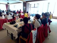 午前中のレッスンを終え、昼食を食べている様子を撮影しました。