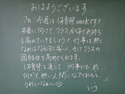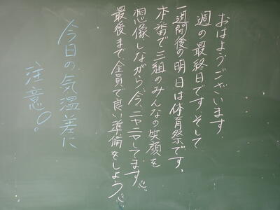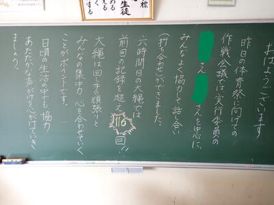 3年生のあるクラスに書かれていました。この気持ちを是非みんなに持って欲しいですね。さすが3年生。