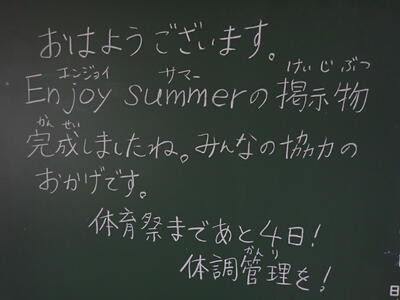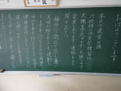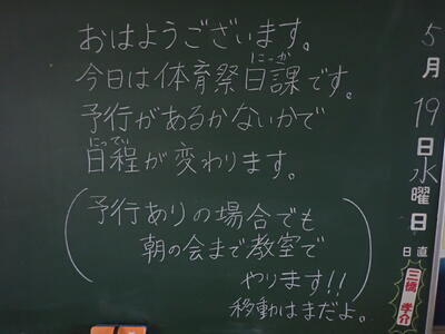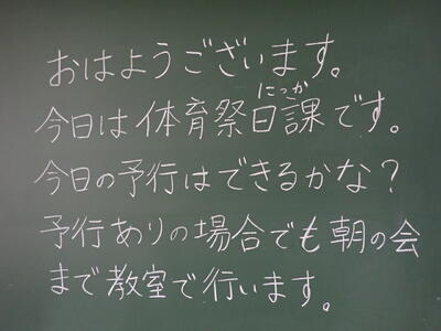 またしても雨です。残念ながら体育祭予行も明日に延期になってしまいました。