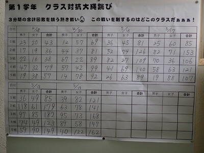 記録はどれだけ伸びるのでしょう。まだ1週間あります。目標を高く持ち協力し達成してください。