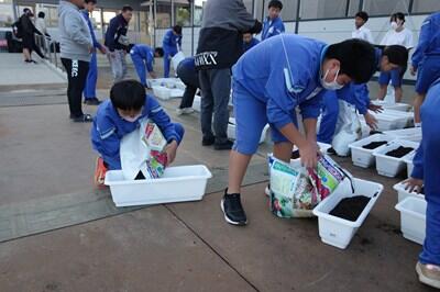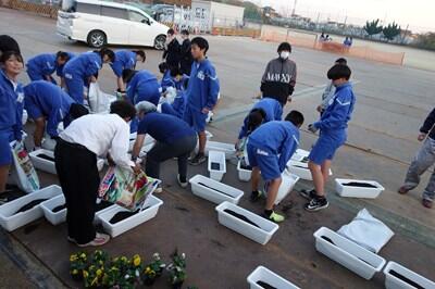 越谷アルファーズ「元気キャラバンー朝のあいさつ」でプロバスケットボールチーム「越谷アルファーズ」から四家魁人選手とチームスタッフの方々が朝のあいさつ運動のために来校されました。葛飾中学校からは、男女バスケットボール部のみなさん、生徒会本部役員、野田前校長先生、本校職員があいさつ運動に参加しました。深い霧に包まれた中、元気のよいさわやかな挨拶の声が響く素敵な朝となりました。