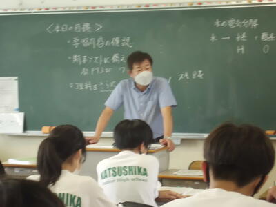 今日はなんと、2年生の理科の授業に校長先生が駆けつけました!校長先生も今日を楽しみにしていたそうです。