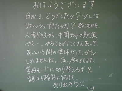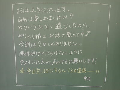 5月に入りゴールデンウィークが終わりました。朝は曇っていましたが、昼間は半袖でもよい陽気になりました。