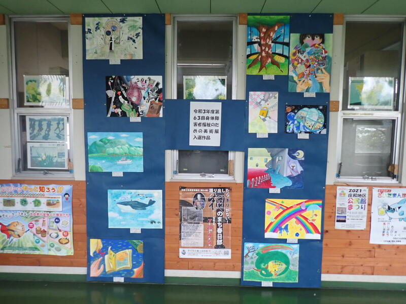 「身体障害者福祉のための美術展」入選作品が掲示されています。葛飾中は毎年多くの素晴らしい作品が出品されますが、今年も独創的で立派です。