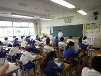 閉式後、生徒指導主任の先生から夏季休業中の生活について、安全主任の先生から交通安全について、保健委員会委員長から健康チェックキャンペーンの表彰、その他の表彰、を行いました。