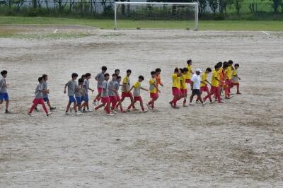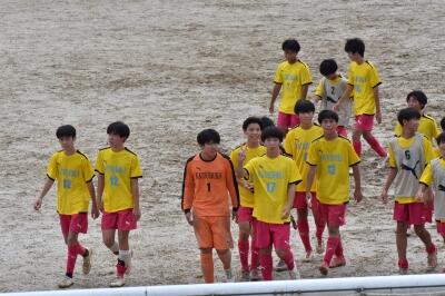 前日夜まで降り続いた雨の影響で、最悪のグランドコンディションで、開催も危ぶまれていましたが、サッカー部のみなさんの懸命な作業のおかげで、試合開始時間を遅らせて無事に開催することができました。そして、見事な勝利!サッカー部のみなさん、おめでとうございます。県大会でも頑張ってくださいね。