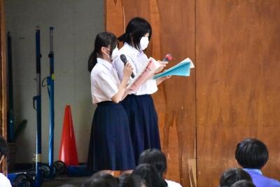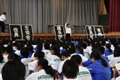 今日は生徒総会が行われました。年に一度開催される生徒総会は生徒会の最高議決機関です。民主主義の基本は皆で決めて、決まったことを、皆で守ることです。また、生徒総会は、葛飾中の課題を葛中生全員が一同に会し議論を尽くす。それらを通して、生徒の手で葛飾中をより良くするためにあるものです。総会は今日まで念な準備を行ってきた生徒会本部役員のみなさん、専門委員会の委員長、選出された議長団、クラス討議を経ての質問者の方々と、真剣な態度で臨んだすべての生徒のおかげで盛会ののちに終了しました。ご協力ありがとうございました。