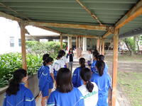 雨が降っていたので、女子ソフトテニス部と野球部が朝練習を屋根のある場所で行っていました。女子ソフトテニス部はインナーマッスル強化、野球部はバドミントンの羽根を使ったバッティング練習をしていました。どの生徒も地味な練習でも決して手を抜くことがなく、また礼儀が素晴らしいことに改めて感心しました。