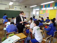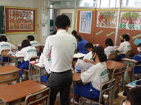 昼休み、ALTのフェルナンド先生(通称ナンド先生)が明日の英検対策のための学習会を開いてくれました。解き方のちょっとしたコツや、英作文でどんなときでも使える表現などを教えてくれました。
