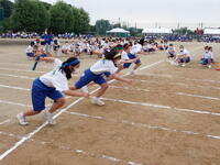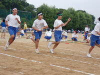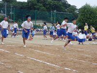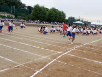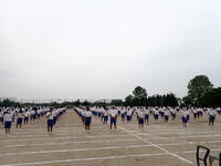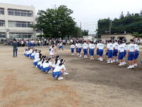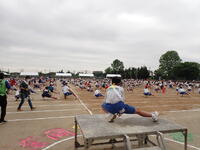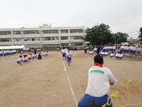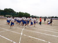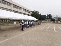 早朝から雨が降り出してしまいましたが、1時間遅れで体育祭を開催することができました。たくさんの生徒が朝早くから集まり、水取り、砂まき、ライン引き等の整備を期待以上の早さで仕上げてくれました。本当にありがとうございました。