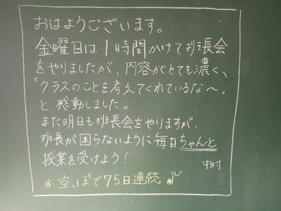 先週まで教育実習をした波田野先生からのメッセージです。良い先生になってください。