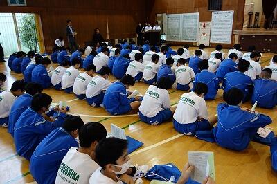 小学校との連携による「食育」の授業、3年生の学年合唱練習が行われました。30日の本番に向け、クラスの歌も、学年合唱曲の練習にも気合が入っています。26日(土)には、南桜井小学校の運動会が行われました。小学校にはたくさんの本校の生徒も応援に駆けつけていました。