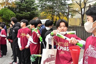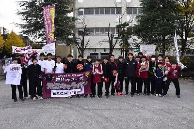 とても寒い一日でした。一気に冬になってしまったようです。今日は昨年に引き続き、プロバスケットボールクラブ「越谷アルファーズ」の元気キャラバンで選手・スタッフの方々が挨拶運動に来てくださいました。生徒会役員、男子バスケットボール部のみなさんを中心に、朝から大変盛り上がりました。
